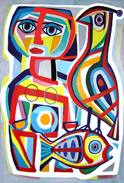 Meisje met vis en vogel